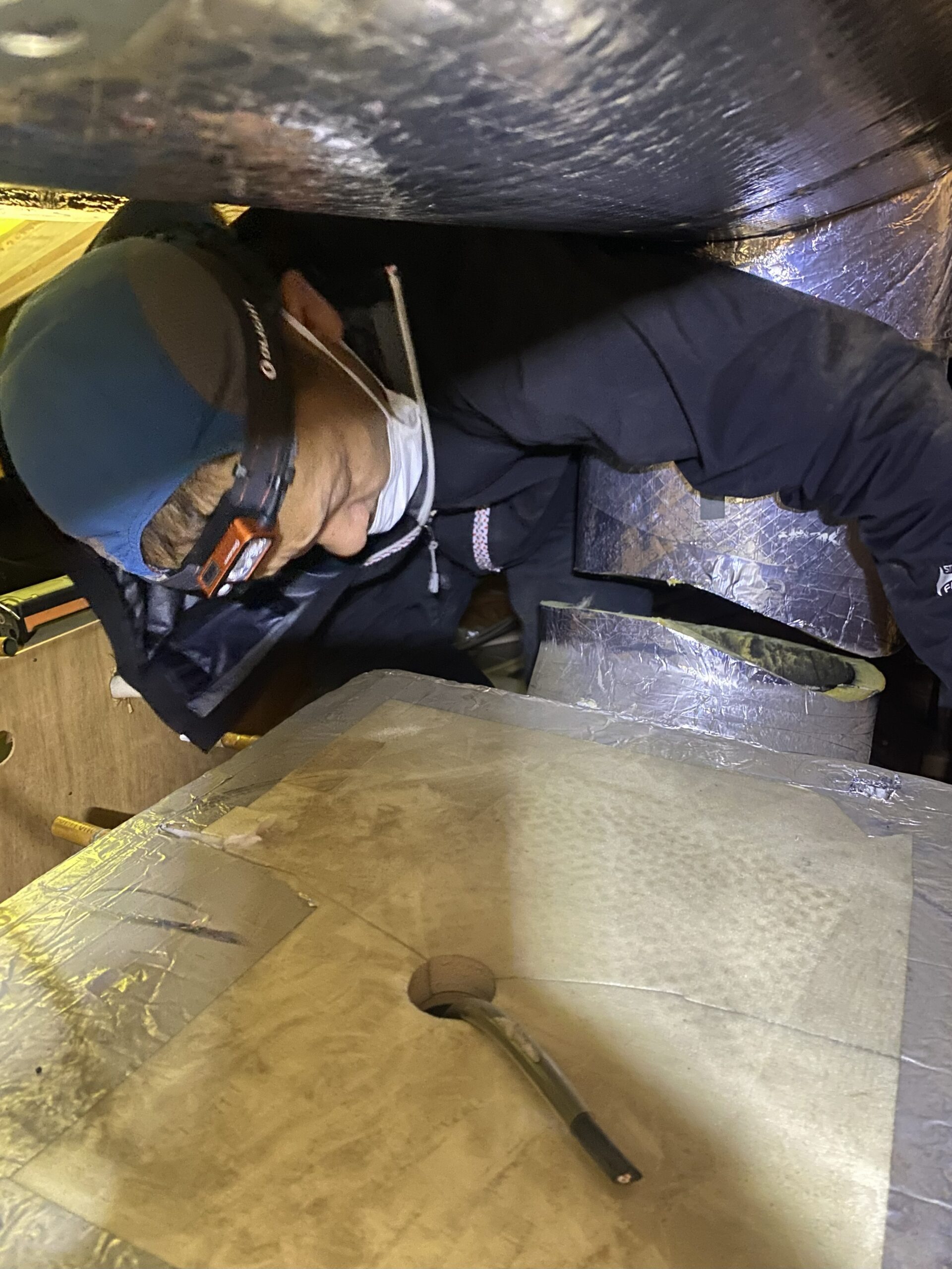 ハンドリングがロフトに設置されているのですが、不安定なはしごをかけて登らざるを得なかったため、なかなか到達することができずに、交換工事は難航しました。