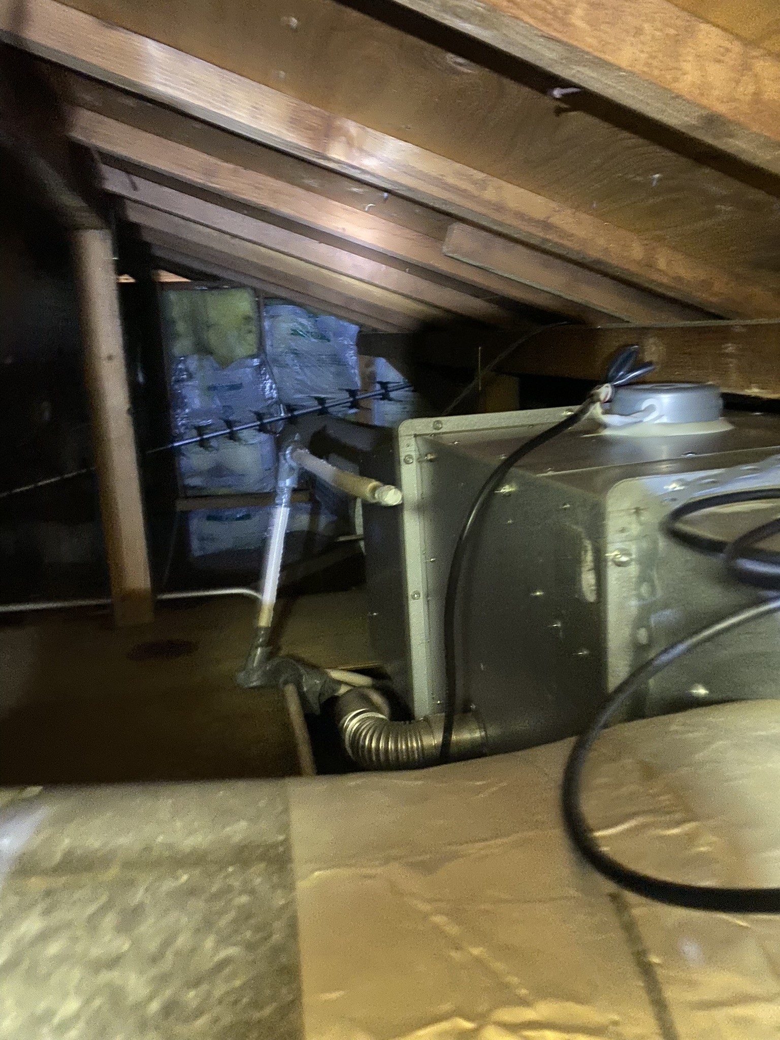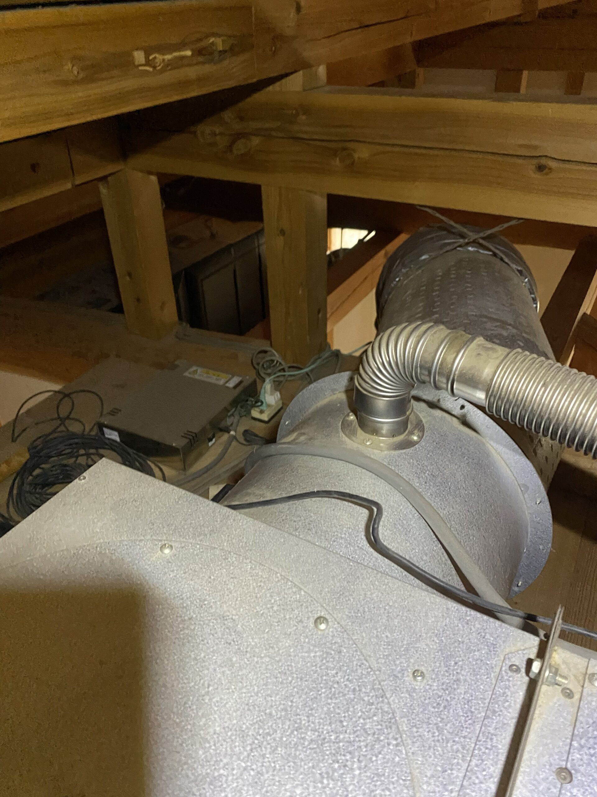 制御盤修理の依頼を受け訪問。屋根裏に上がってみると、2台体制の物件だった。しかも、今回依頼いただいたのと別のハンドリングではファンの運転停止を発見。後日再訪し、ファンボックスを交換。2台体制の物件では、1台ダメになっていても暖かさが得られるので、気づきにくい傾向にあります。