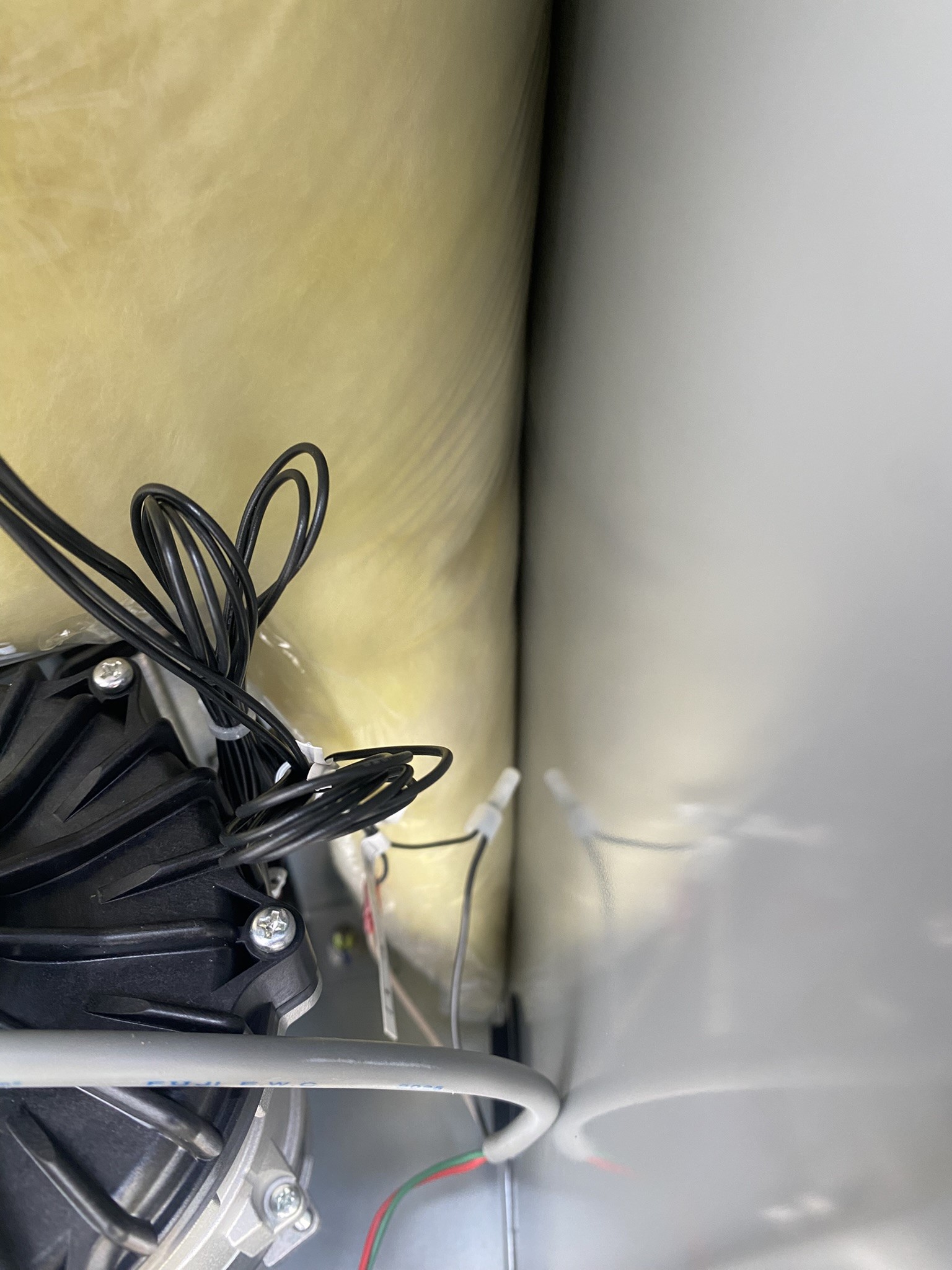 暖かくならないということで、制御盤の交換+ファンボックスの交換を依頼されたのですが、、狭いところかつグラスウール断熱材をガラス繊維の飛散に悩まされながらの作業になりました。